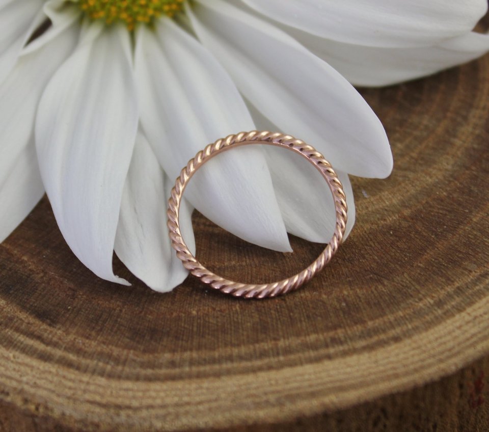 14k Rose Gold Rope Ring, Gold Stacking Ring, Stackable, Rope Texture, Twisted Gold Ring, Thin Gold Ring, Ready to Ship