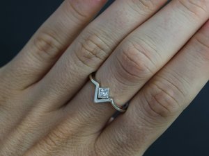 14k White Gold Moissanite 4mm Ring, Solitaire Chevron Ring, Princess Cut Moissanite, One of a Kind, Alternative engagement, non-traditional engagement,